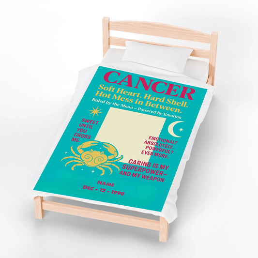 CANCER – The Moonchild Personalized Zodiac Blanket | “I Feel Deeply, Love Harder, and Bite When Provoked.”